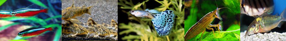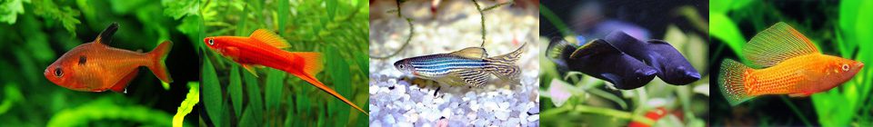 Мирные, мелкие виды. Данио, Меченосцы, Моллинезии, а также более крупные Тетры, как то Тернеции, Украшенные Тетры, Серповидные Неоны (Кровавые Тетры), Филомены, Черные Неоны и Медные Тетры. Некоторые из этих рыб прекрасно чувствуют себя в тропическом 60-100 литровом аквариуме. Эти виды обитают коллективно – лучше приобрести по несколько рыбок каждого из выбранных видов.