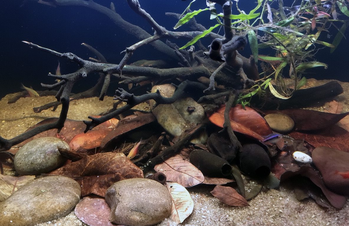Идея использования листьев и других «водных ботанических средств» в аквариумах не совсем новая. Мы можем догадываться, что когда то это произошло случайно. Однажды какой-то рыбовод искал способ имитировать природную среду, из которой произошли его рыбы, бросил несколько старых листьев, и вот его рыбы начали выглядеть лучше, демонстрируя более сильные цвета, а естественный субстрат способствовал долгожданному нересту.