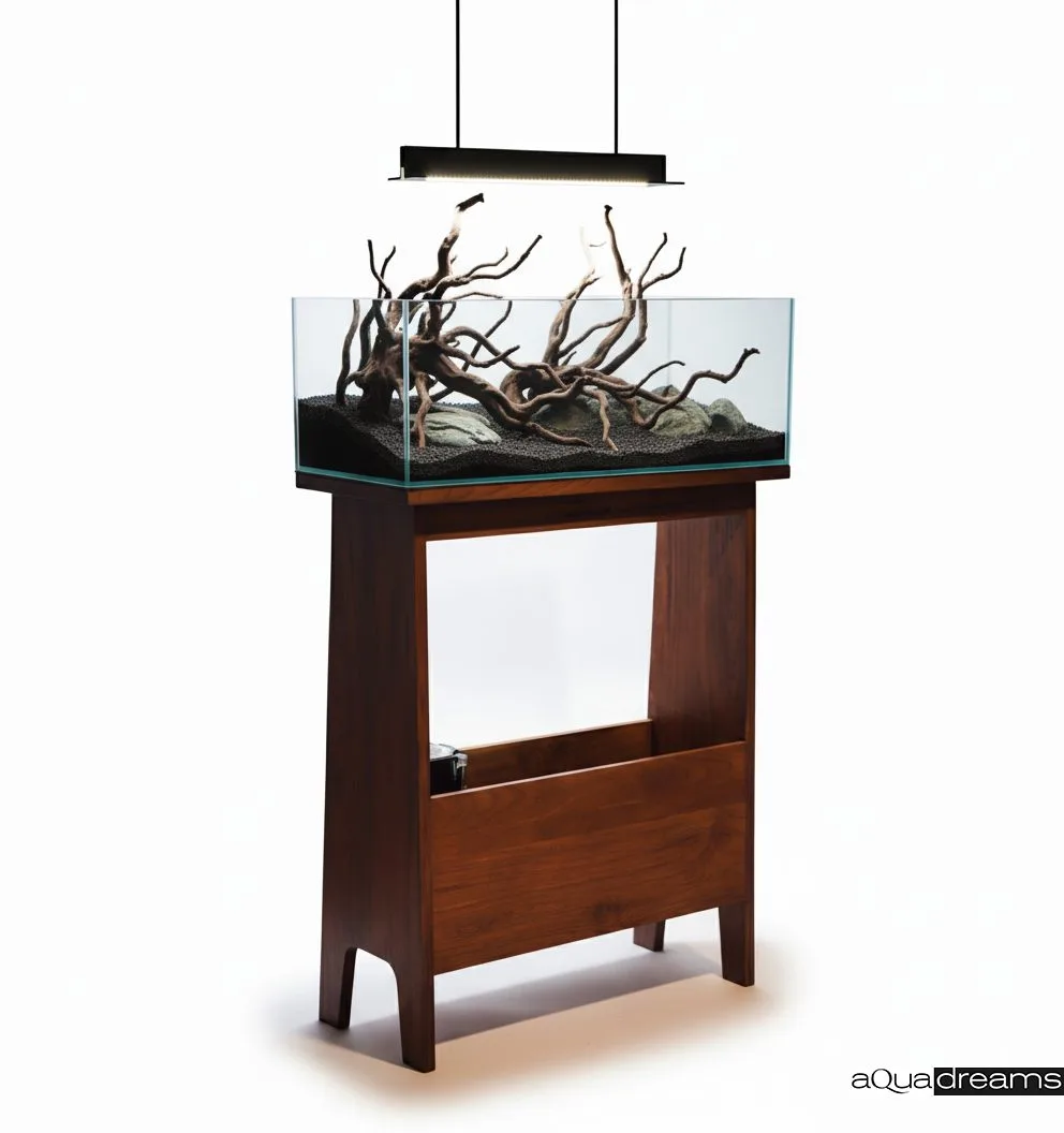 Компактный аквариум в эконом-сегменте с открытой тумбой и скрытым фильтром. Простое и удобное решение для дома или офиса. Подходит для базовых аквасистем и небольших пространств.